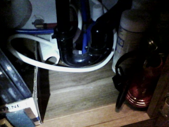 The dark blue spot under the sink could indicate a possible leak